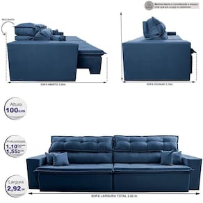 Sofá Retrátil E Reclinável 2,92m Luxos Cama Inbox Velusoft Azul