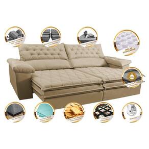 Sofá Retrátil e Reclinável 2,92m Molas Ensacadas Cama inBox Alemanha. com Viscoelástico Velusoft - Bege