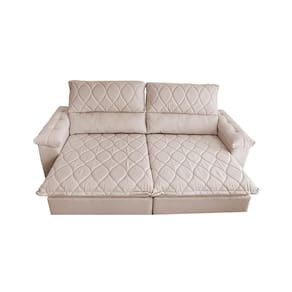 Sofá Retrátil E Reclinável 2,95m Molas Ensacadas Cama Inbox Big Home Bordado 3d Linho Bege Claro