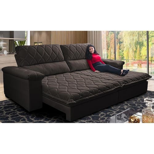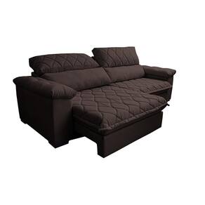 Sofá Retrátil E Reclinável 2,95m Molas Ensacadas Cama Inbox Big Home Bordado 3d Linho Marrom