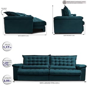 Sofá Retrátil E Reclinável 2,95m Molas Ensacadas Cama Inbox Big Space Com Bordado 3d Velusoft Petróleo