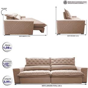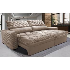 Sofá Retrátil e Reclinável 2,95m Molas Ensacadas Cama inBox Spazus. com Bordado 3D Velusoft - Bege