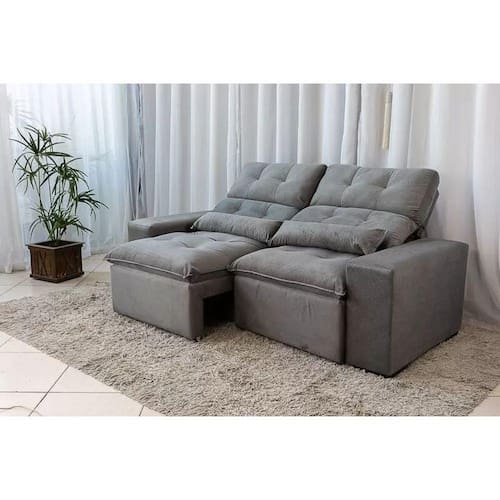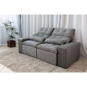 Sofá Retrátil e Reclinável 2m Tecido Suede Cinza