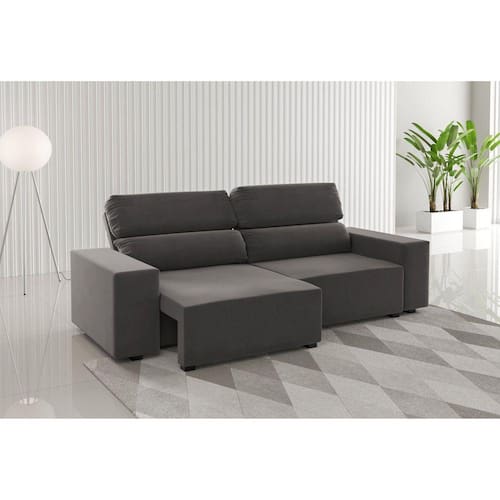 Para promover aconchego e bem-estar aos seus cantinhos preferidos, conte com o Estofado Lion, ele é perfeito para trazer o charme que falta ao seu lar enquanto acomoda familiares e amigos para aquela conversa gostosa em um final de tarde ou sessão de filmes no fim de semana. Para melhorar, ele ainda tem assento retrátil, que ajuda a proporcionar um relaxamento mais pleno, e encosto reclinável, que deixa aquele cochilo depois do almoço bem mais confortável. Acompanha Almofadas extras: Não Almofada do assento: Não Possui Almofada do encosto: Fixa Altura do assento até o chão: 37 Altura do Encosto: 70 Altura dos Pés: 4 Ambiente Principal: Sala de Estar Complexidade da Montagem: Média: pode ser montado por mais de uma pessoa e/ou necessite de maior conhecimento para montagem Cor: Grafite Cor do Produto: Grafite Densidade do Encosto: D-14 Enchimento do Encosto: Fibra Siliconada Estilo de Braço: Braços Largos Itens Inclusos: 1 Sofá, Kit Ferragens e Manual de Montagem Manual de Montagem e Instalação: https://product-hub-prd.madeiramadeira.com.br/880687/documents/ec789923-d3c6-4aed-b809-0ae31781b00cesqdemontagemestofadoclick.pdf Material dos Pés: Plástico Necessita Montagem: Sim Nível de Conforto: Firme Origem do Produto: Nacional Peso: 53 Pet Friendly: Não Possui Percintas Elásticas: Sim Possui Pés: 09 Possui Rodízio: Não Profundidade Quando Estendido: 144 Recomendações de Uso, Manutenção e Limpeza: Limpar com pano levemente umedecido com água Sistema de Montagem: Parafusos Suporta Até (kg): 180 Tecido Predominante: Veludo Tipo de Encosto: Regulável Tipo de Mola: Não Possui