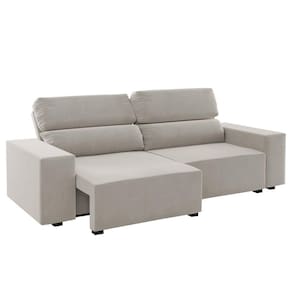 Para promover aconchego e bem-estar aos seus cantinhos preferidos, conte com o Estofado Lion, ele é perfeito para trazer o charme que falta ao seu lar enquanto acomoda familiares e amigos para aquela conversa gostosa em um final de tarde ou sessão de filmes no fim de semana. Para melhorar, ele ainda tem assento retrátil, que ajuda a proporcionar um relaxamento mais pleno, e encosto reclinável, que deixa aquele cochilo depois do almoço bem mais confortável. Acompanha Almofadas extras: Não Almofada do assento: Não Possui Almofada do encosto: Fixa Altura do assento até o chão: 37 Altura do Encosto: 70 Altura dos Pés: 4 Ambiente Principal: Sala de Estar Complexidade da Montagem: Média: pode ser montado por mais de uma pessoa e/ou necessite de maior conhecimento para montagem Cor: Marfim Cor do Produto: Marfim Densidade do Encosto: D-14 Enchimento do Encosto: Fibra Siliconada Estilo de Braço: Braços Largos Itens Inclusos: 1 Sofá, Kit Ferragens e Manual de Montagem Manual de Montagem e Instalação: https://product-hub-prd.madeiramadeira.com.br/880683/documents/88f45711-8a1d-4db2-b175-91d7d4fadabcesqdemontagemestofadoclick.pdf Material dos Pés: Plástico Necessita Montagem: Sim Nível de Conforto: Firme Origem do Produto: Nacional Peso: 53 Pet Friendly: Não Possui Percintas Elásticas: Sim Possui Pés: 09 Possui Rodízio: Não Profundidade Quando Estendido: 144 Recomendações de Uso, Manutenção e Limpeza: Limpar com pano levemente umedecido com água Sistema de Montagem: Parafusos Suporta Até (kg): 180 Tecido Predominante: Veludo Tipo de Encosto: Regulável Tipo de Mola: Não Possui