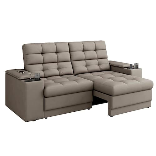 Um produto inovador para elevar a decoração da sua sala de estar e ainda oferecer conforto e funcionalidade. O sofá retrátil reclinável Maldivas é um produto para te proporcionar comodidade e ainda a funcionalidade de poder carregar o seu aparelho celular ou notebook enquanto assiste os seus programas favoritos. Ele possui entrada USB e porta copo no seu braço. Produzido com materiais de altíssima qualidade. Seu assento retrátil é preenchido com espuma, fibra e flocos. O encosto reclinável é removível e composto por fibras e flocos. São até 4 estágios de reclinação para desfrutar de mais conforto. Ele comporta até 3 pessoas confortavelmente.