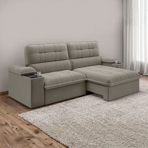O sofá une conforto, funcionalidade e estilo em um só móvel. Com design moderno, é retrátil e possui encosto reclinável em 3 estágios, que permite ajustar a inclinação conforme a sua preferência, ideal para relaxar, assistir TV ou descansar com ainda mais conforto. Sua estrutura é feita em madeira reflorestada, garantindo maior vida útil e durabilidade. O assento e o encosto possuem espuma de alta qualidade e percintas elásticas, oferecendo suporte firme e confortável, enquanto braços e encosto são preenchidos com fibras e flocos, proporcionando maciez e aconchego. Para mais praticidade, o braço direito conta com um cooler embutido de 5 litros, ideal para manter suas bebidas sempre geladas, e porta-copos em ambos os braços, ao alcance da sua mão sem precisar sair do lugar. Os pés em PVC oferecem estabilidade, e os rodízios de silicone facilitam a movimentação sem riscar o piso. Este sofá é a escolha certa para quem busca um sofá resistente, moderno e com conforto premium para o uso diário.