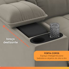 MODELO: Sofá Retrátil e Reclinável 3 Lugares 2,10m c/ Porta Copos Slim