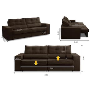 Sofá Retrátil e Reclinável 3 lugares 2,10m com Molas Mirela Suede Marrom Adonai Estofados