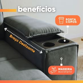 MATERIAL DO BRAÇO: Espuma confortável para apoio extra com porta copos de poliuretano