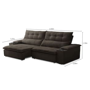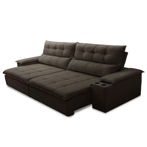 O Sofá Bulgária, é perfeito para promover aconchego e bem-estar, um modelo estruturado com madeira de eucalipto, revestido em veludo, com pés em madeira, rodízios de silicone e encosto reclinável por meio de catraca de 5 estágios, composto por fibra siliconada. Um móvel que abraça com a maciez do veludo que só o Sofá Bulgária pode oferecer. Graças ao seu design, ele é perfeito para trazer o charme que falta ao seu lar, possui braços retráteis com porta objetos, composto por espuma D-20, excelente para acomodar seus familiares e amigos. E para melhorar conte com seu assento retrátil em tubo composto por espuma D-26, um modelo que faz toda a diferença e proporciona todo conforto merecido. Acompanha Almofadas extras: Não Almofada do assento: Fixa Almofada do encosto: Fixa Altura do assento até o chão: 50 Altura do Encosto: 65 Altura dos Pés: 3 Ambiente Principal: Sala de Estar Complexidade da Montagem: Baixa: pode ser montado por uma pessoa sozinha Cor: Marrom Cor do Produto: Marrom Densidade do Assento: D-26 Densidade do Encosto: Camadas de Densidades Diferentes Enchimento do Assento: Espuma Enchimento do Encosto: Fibra Siliconada Estilo de Braço: Braços Quadrados Firmeza do Assento: Médio Informações Complementares: Estrutura: Madeira de lei (Eucalipto) devidamente tratada e aparelhada com reforços e cantoneiras e chapas em MDF.ENCOSTO: Reclinável por meio de catraca metálica de 5 estágios, composto por 100% de fibra siliconada.ASSENTO: Retrátil em tubo, composto por Itens Inclusos: 1 Sofá e Manual de Instruções Linha ou Coleção: Retrátil e Reclinável, com porta copos e objetos Manual de Montagem e Instalação: https://product-hub-prd.madeiramadeira.com.br/871795/documents/90d5f395-db5f-4a8f-8ee1-46f5def9b65c3esquemademontagemferguile.pdf Material dos Pés: Madeira Montagem Flex: Não possui Necessita Montagem: Sim Origem do Produto: Nacional Peso: 70 Pet Friendly: Não Possui Percintas Elásticas: Sim Possui Pés: 05 Possui Rodízio: Sim Profundidade Quando Estendido: 137 Recomendações de Uso, Manutenção e Limpeza: Para remoção de poeira, utilizar aspirador de pó em velocidade baixa ou escova com filamentos ultra macios. Para a remoção de líquidos e sujeira derramados de forma acidental, retirar delicadamente sem comprimir o tecido, utilizando pano limpo ou papel absorvente. Não é recomendado utilizar produtos de limpeza domésticos. Para evitar a alteração na cor do revestimento, o estofado não deverá ser exposto ao sol ou a alta luminosidade. Evite o contato do estofado com objetos cortantes, perfurantes e pontiagudos. Para movimentar o estofado de forma correta, levante-o segurando por baixo. Resistente à Chuva: Não Revestimento do Braço: Veludo Rodízio com Trava: Não Sistema de Montagem: Rosqueamento dos pés e encaixe dos encostos Suporta Até (kg): 100 Tecido Predominante: Veludo Tipo de Encosto: Regulável Tipo de Mola: Molas Ensacadas (Molas ensacadas) Ean: 7909903440490