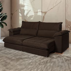 O Sofá Retrátil e Reclinável Italia da Kasacomigo Estofados é perfeito para quem valoriza conforto e elegância. Com um design moderno, ele se adapta a qualquer ambiente. O sistema retrátil e reclinável permite ajustar o assento para um relaxamento personalizado. Feito com estofado de alta qualidade, garante durabilidade e um toque macio. Ideal para transformar sua sala em um espaço acolhedor e sofisticado, proporcionando momentos de descanso superiores. Produto Montado: Não Acompanha Almofadas extras: Não Almofada do assento: Fixa Almofada do encosto: Fixa Altura do assento até o chão: 50.0000 Altura do Encosto: 93 cm Altura dos Pés: 2,5 cm Ambiente Principal: Sala de Estar codigo_ean: 7909903937006 Consistência do Assento: Macio Cor: Marrom Cor do Produto: Marrom Densidade do Assento: D-26 Enchimento do Assento: Espuma Enchimento do Encosto: Fibra Siliconada Firmeza do Assento: Macio Itens Inclusos: 1 Sofá e manual de instrução Material dos Pés: Madeira Necessita Montagem: Não Peso: 94 kg Pet Friendly: Não Possui Percintas Elásticas: Sim Possui Pés: 08 Possui Rodízio: Sim Recomendações de Uso, Manutenção e Limpeza: Limpeza com pano macio e levemente umedecido. Não utilizar solventes a base e de inflamáveis. Não utilizar produtos abrasivos. Rodízio com Trava: Não Suporta Até (kg): 120 kg Tecido Predominante: Veludo Tipo de Encosto: Regulável Marca: Kasacomigo Estofados