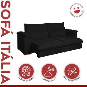 O Sofá Retrátil e Reclinável Italia da Kasacomigo Estofados é perfeito para quem valoriza conforto e elegância. Com um design moderno, ele se adapta a qualquer ambiente. O sistema retrátil e reclinável permite ajustar o assento para um relaxamento personalizado. Feito com estofado de alta qualidade, garante durabilidade e um toque macio. Ideal para transformar sua sala em um espaço acolhedor e sofisticado, proporcionando momentos de descanso superiores. Produto Montado: Não Acompanha Almofadas extras: Não Almofada do assento: Fixa Almofada do encosto: Fixa Altura do assento até o chão: 50.0000 Altura do Encosto: 93 cm Altura dos Pés: 2,5 cm Ambiente Principal: Sala de Estar codigo_ean: 7909903937013 Consistência do Assento: Macio Cor: Preto Cor do Produto: Preto Densidade do Assento: D-26 Enchimento do Assento: Espuma Enchimento do Encosto: Fibra Siliconada Firmeza do Assento: Macio Itens Inclusos: 1 Sofá e manual de instrução Material dos Pés: Madeira Necessita Montagem: Não Peso: 94 kg Pet Friendly: Não Possui Percintas Elásticas: Sim Possui Pés: 08 Possui Rodízio: Sim Recomendações de Uso, Manutenção e Limpeza: Limpeza com pano macio e levemente umedecido. Não utilizar solventes a base e de inflamáveis. Não utilizar produtos abrasivos. Rodízio com Trava: Não Suporta Até (kg): 120 kg Tecido Predominante: Veludo Tipo de Encosto: Regulável Marca: Kasacomigo Estofados
