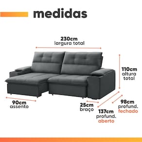 DIFERENCIAL: Modelo retrátil e reclinável ideal para quem busca praticidade e conforto, porta copos para maior praticidade durante o dia. Assento com molas ensacadas.