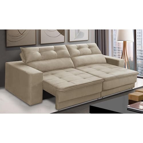 Sofá Retrátil e Reclinável 3 lugares 2,50m com Molas Emily Suede Bege Adonai Estofados