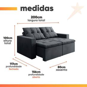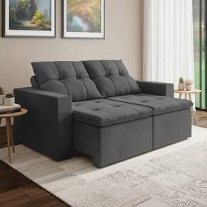 Importante sobre a entrega: A entrega é realizada até a portaria ou porta de entrada do endereço indicado, desde que o acesso seja permitido. Para locais com portaria, a entrega será feita no piso térreo. Não realizamos montagem, desmontagem, transporte por escadas ou içamento. É responsabilidade do cliente verificar se as dimensões do produto são compatíveis com portas, elevadores e corredores. Evite imprevistos: confira todos os detalhes antes de concluir sua compra. MEDIDAS:: A = 100 cm L = 200 cm P = 156 cm (Aberto) / 117 cm (Fechado) | PESO SUPORTADO POR ASSENTO:: 130 kg | PESO:: 69,5 kg | MODELO:: Sofá Retrátil e Reclinável 3 Lugares 2m Veludo Damasco | MARCA:: Bex's Estofados | MATERIAL DA ESTRUTURA:: Madeira de reflorestamento, garantindo resistência, durabilidade e qualidade | TIPO DE SOFÁ:: Retrátil e reclinável, ideal para momentos de descanso e lazer | MATERIAL DO ASSENTO:: Molas de qualidade, oferecendo sustentação e conforto | DENSIDADE DA ESPUMA:: HR26, que proporciona maciez e firmeza equilibradas, dentro dos padrões ABNT | QUANTIDADES DE LUGARES:: 3 lugares | MATERIAL DO ENCOSTO:: Mix de flocos de espuma com fibra de silicone, proporcionando conforto extra | TECIDO DO SOFÁ:: Veludo, sofisticado, macio ao toque e de fácil combinação na decoração | POSSUI ENCOSTO REMOVÍVEL:: Sim, facilitando ajustes e limpeza | MATERIAL DO BRAÇO:: Espuma macia para maior conforto | MATERIAL DOS PÉS:: Plástico resistente | QUANTIDADES DE PÉS:: 4 | RODÍZIOS:: Sim, que facilitam a movimentação do sofá no ambiente | DIFERENCIAL:: Assento com molas de qualidade e espuma plumante para máximo conforto / Encosto e assento bordados em metalassê com manta siliconada, trazendo charme e sofisticação ao design / Estilo moderno e versátil, ideal para diferentes tipos de ambientes | INSTRUÇÕES E CUIDADOS:: Limpar com pano úmido ou aspirador. Evitar produtos abrasivos. | GARANTIA:: 3 Meses. | AVISO:: Importante sobre a entrega: A entrega é realizada até a portaria ou porta de entrada do endereço indicado, desde que o acesso seja permitido. Para locais com portaria, a entrega será feita no piso térreo. | É kit de fábrica: Não | Inclui manual de montagem: Sim | Quantidade de caixas de embalagem: 1 | Requer montagem: Sim | Cor: Cinza
