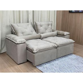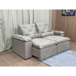 Sofá Retrátil e Reclinável 3 lugares Bege 2 m de largura e 1,60 aberto com Pillow Top