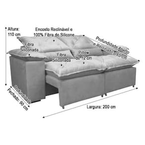 Encosto: Reclinável em 4 posições, espuma Prorelax. Pillow top de 10 cm com espuma siliconizada.