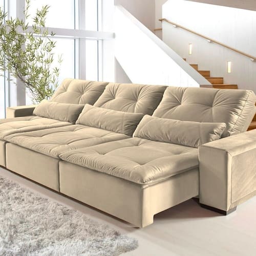 Desenvolvido para aqueles que buscam combinar bom gosto com durabilidade para o uso diário, este item apresenta uma estrutura reforçada de madeira de eucalipto, além de um revestimento de toque agradável, garantindo total conforto. O seu visual elegante, com uma coloração tradicional para esse tipo de móvel, é o toque final que coroa os benefícios que ele proporciona para o seu adorável lar. Produto Montado: Sim Acompanha Almofadas extras: Não Almofada do assento: Fixa Almofada do encosto: Fixa Altura do assento até o chão: 45.0000 Altura do Encosto: 110 cm Altura dos Pés: 4 cm Ambiente Principal: Sala de Estar codigo_ean: 7909903665800 Complexidade da Montagem: Média: pode ser montado por mais de uma pessoa e/ou necessite de maior conhecimento para montagem Cor: Bege Cor do Produto: Bege Densidade do Assento: Camadas de Densidades Diferentes Enchimento do Assento: Espuma Enchimento do Encosto: Fibra Siliconada Firmeza do Assento: Macio Itens Inclusos: 1 Sofá e Manual de Montagem Material dos Pés: Madeira Maciça Necessita Montagem: Sim Origem do Produto: Nacional Peso: 131 kg Pet Friendly: Não Porta Copos: Não Possui Entrada USB: Não Possui Percintas Elásticas: Sim Possui Pés: 12 Possui Rodízio: Não Profundidade Quando Estendido: 180 Recomendações de Uso, Manutenção e Limpeza: Para manchas, sujeiras: Podem ser removidas com álcool em gel e uma escova de cerdas macias. Poeira pode ser retirada com aspirador. Sistema de Montagem: Parafusos e conectores de metal. Suporta Até (kg): 130 kg Tecido Predominante: Poliéster Tipo de Encosto: Fixo