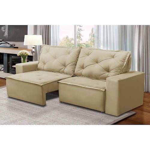 Sofá Retrátil e Reclinável 3 lugares com Molas 1,50m Alana Suede Bege Madelina