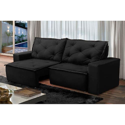 Assento:Feito com espuma D-28 com percintas elásticas de 5mm e Molas, o assento é retrátil que permite você utilizar o sofá com as pernas esticadas e ter todo o conforto que ele possa te proporcionar.