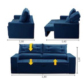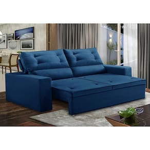Sofá Retrátil e Reclinável 3 lugares com Molas 1,80m Laisa Suede Azul Madelina Decor - Azul Marinho