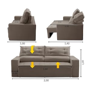 Assento:Feito com espuma D-28 com percintas elásticas de 5mm e Molas, o assento é retrátil que permite você utilizar o sofá com as pernas esticadas e ter todo o conforto que ele possa te proporcionar.