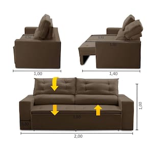 Sofá Retrátil e Reclinável 3 lugares com Molas 2,00m Laisa Suede Marrom Madelina Decor