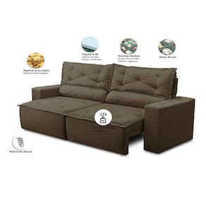 Assento: Feito com espuma D-28 com percintas elásticas de 5mm e Molas, o assento é retrátil que permite você utilizar o sofá com as pernas esticadas e ter todo o conforto que ele possa te proporcionar.