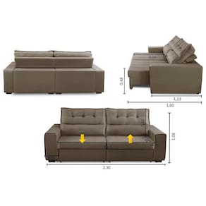 Sofá Retrátil e Reclinável 3 Lugares com Molas 2,30m Dani Suede Cappuccino Adonai Estofados - Nude