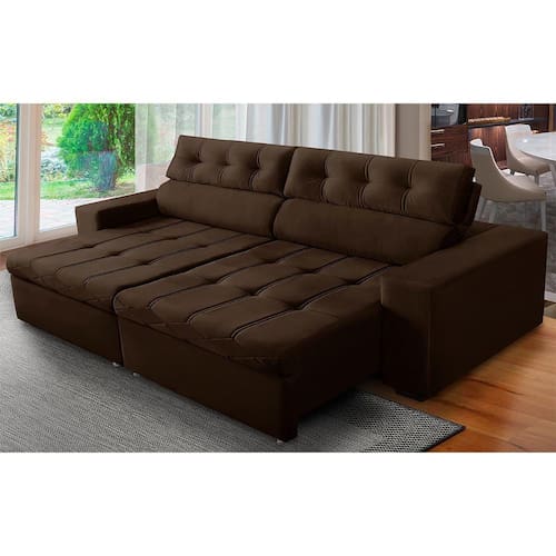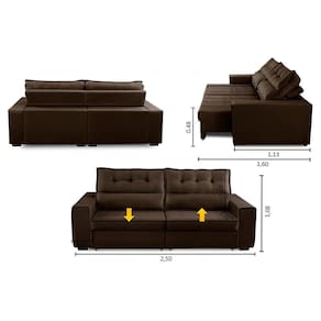 Sofá Retrátil e Reclinável 3 Lugares com Molas 2,50m Dani Suede Marrom Adonai Estofados