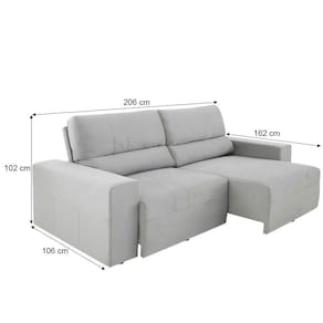 Dimensões: Tamanho Fechado (AxLxP): 102 x 206 x 106 cm Tamanho Aberto (AxLxP): 82 x 206 x 162 cm Altura chão ao assento: 46 cm Largura assento: 80 cm Largura braço: 23 cm Peso: 77 kg.