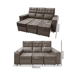 Dimensoes do Produto: Largura: 190 cm Altura: 100 cm. Profundidade: 100 cm. Altura do chao ao assento: 45 cm Largura do Braco: 20 cm Medidas Internas do Assento: L-150 x P- 55 cm Peso: 50 KG
