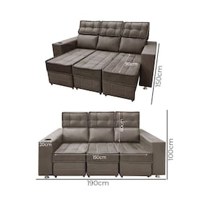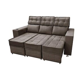 Sofá Retrátil e Reclinável 3 lugares Londres 1.90cm com Molas Suede Speciale Home - Marrom Escuro