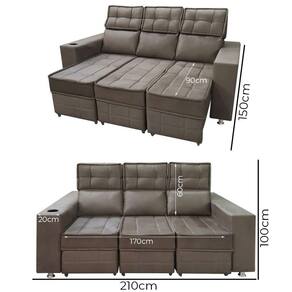 Sofá Retrátil E Reclinável 3 Lugares Londres 2.10cm C/molas Marrom Castor