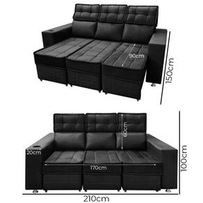 Sofá Retrátil E Reclinável 3 Lugares Londres 2.10cm C/molas Preto