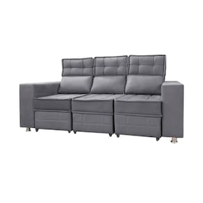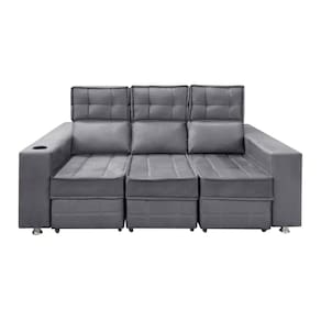 Sofá Retrátil e Reclinável 3 lugares Londres 2.10cm C/Molas - Suede - Cinza