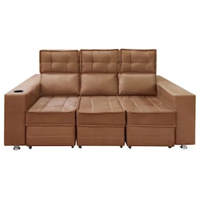 Características do Produto: Material da Estrutura: Madeira de eucalipto -Reflorestamento- Assento em Espuma: D-20 Encosto em Espuma: Fibra Siliconada com Flocos Braços em Espuma: D-12 Possui 4 Pés de PVC com pintura cromada. Sustentação do encosto e assento com Percintas elásticas. Braços com chapa de mdf Fixação com grampos Galvanizados Encosto Removível Mecanismo Retrátil no assento Catraca no encosto Rodízios em gel