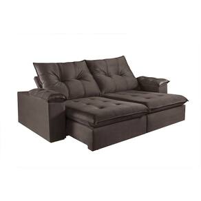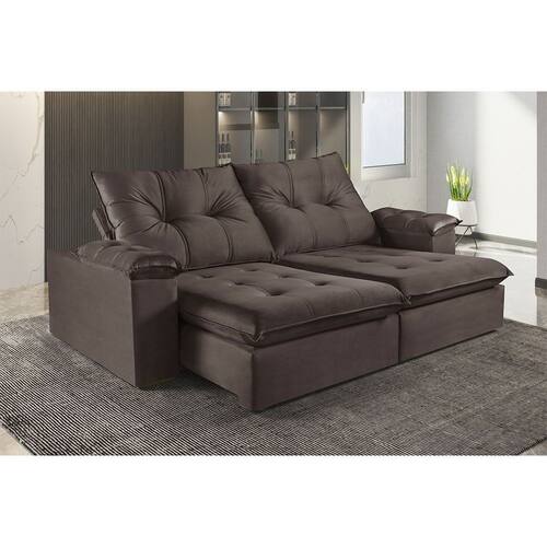 Caracteristicas: Sofa Marca: Martins Estofados Modelo: M-194 Bipartido: facilita o transporte e a montagem Bracos com 25 cm de largura, com pillow de fibra de silicone 4 pes no total -2 por modulo-, em madeira macica Pinus/Sinamomo 4 rodizios de silicone incolor -2 por modulo- Assento retratil com espuma D-28 Soft e molas ensacadas Pillow no assento com 20 cm de altura Tipo de Tecido: Veludo Encosto reclinavel com fibra de silicone -fixo- Persintas elasticas para maior sustentacao Bracos com espuma D-28 firme e pillow de fibra de silicone Revestimento em espuma D-28 Soft Estrutura em madeira de eucalipto tratada, aparelhada Trilho retratil em tubo pintado Catraca com 5 estagios de inclinacao