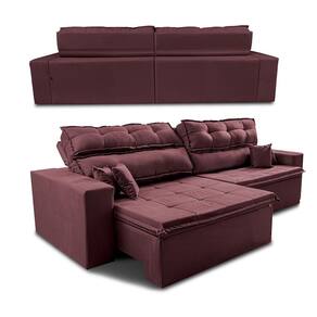 Sofá Retrátil E Reclinável 3,12m Luxos Cama Inbox Velusoft Vinho