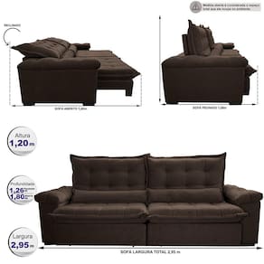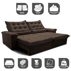 Sofá Retrátil e Reclinável 3,15m Cama inBox Big Fresh. com SoftGel D40 Velupluma - Marrom