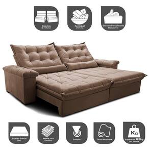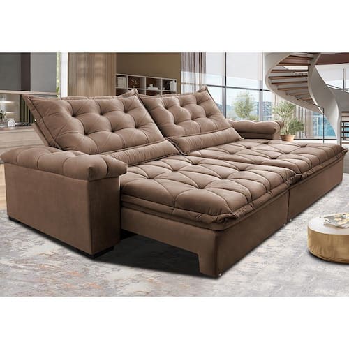 Sofá Retrátil e Reclinável 3,15m Cama inBox Big Fresh. com SoftGel D40 Velupluma - Palha