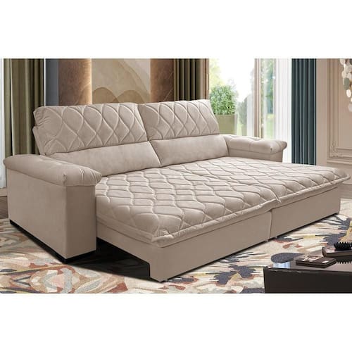 Sofá Retrátil E Reclinável 3,15m Molas Ensacadas Cama Inbox Big Home Com Bordado 3d Velusoft Bege