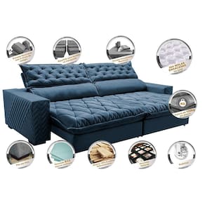 Sofá Retrátil e Reclinável 3,15m Molas Ensacadas Cama inBox Spazus. com Bordado 3D Velusoft - Azul Marinho