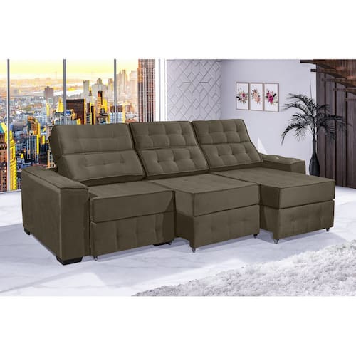 Sofá Retrátil e Reclinável 3,20m ESTILO ESTOFADOS - PARIS 3 módulos com Velusoft D33 "PRATA"