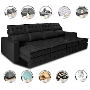 *Assentos: Feitos com espuma D33, Fibra Siliconada, Percintas Pneumáticas e Madeira de Eucalipto, sua estrutura foi desenvolvida para dar mais qualidade e praticidade ao seu dia a dia. Seus assentos são retráteis, dando mais modernidade a sua sala. Além disso, para dar maior conforto e sustentação, na parte do Pillow foram utilizadas Molas Ensacadas de Molejo Duplo, uma excelente opção para passar horas deitado/sentado sem dores e/ou desconfortos.