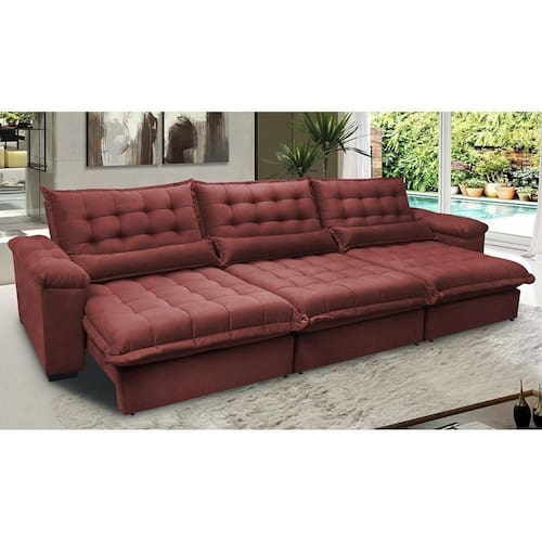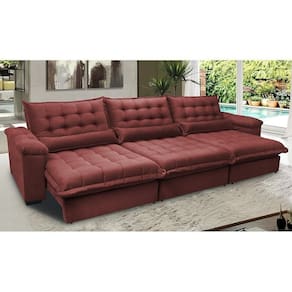Sofá Retrátil E Reclinável 3,22m Com Molas Ensacadas Cama Inbox Aconchego Tecido Suede Vermelho