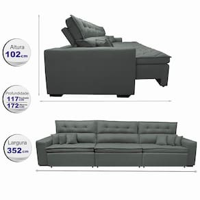 -Braços: Com 25cm de largura, com espuma D33 e costuras duplas.
