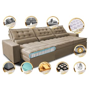 Leve muito conforto e design para sua casa com o Sofá Cama inBox Gold! Esse sofá faz parte da linha especial de estofados Cama inBox que traz uma maravilhosa experiência de conforto. Seus assentos possuem mais de 390 MOLAS ENSACADAS DE MOLEJO DUPLO, uma TRIPLA CAMADA de espumas cobertas por mais uma macia camada de fibra siliconada em seu Pillow TOP, uma sensação inexplicável! Sinta-se abraçado(a) pelo conforto do Maravilhoso Sofá Cama inBox Gold!