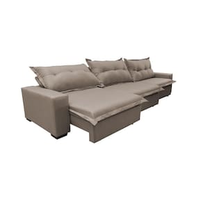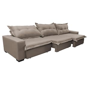 Sofá Retrátil E Reclinável 3,52m Com Molas Ensacadas Cama Inbox Prime Tecido Linho Bege Escuro